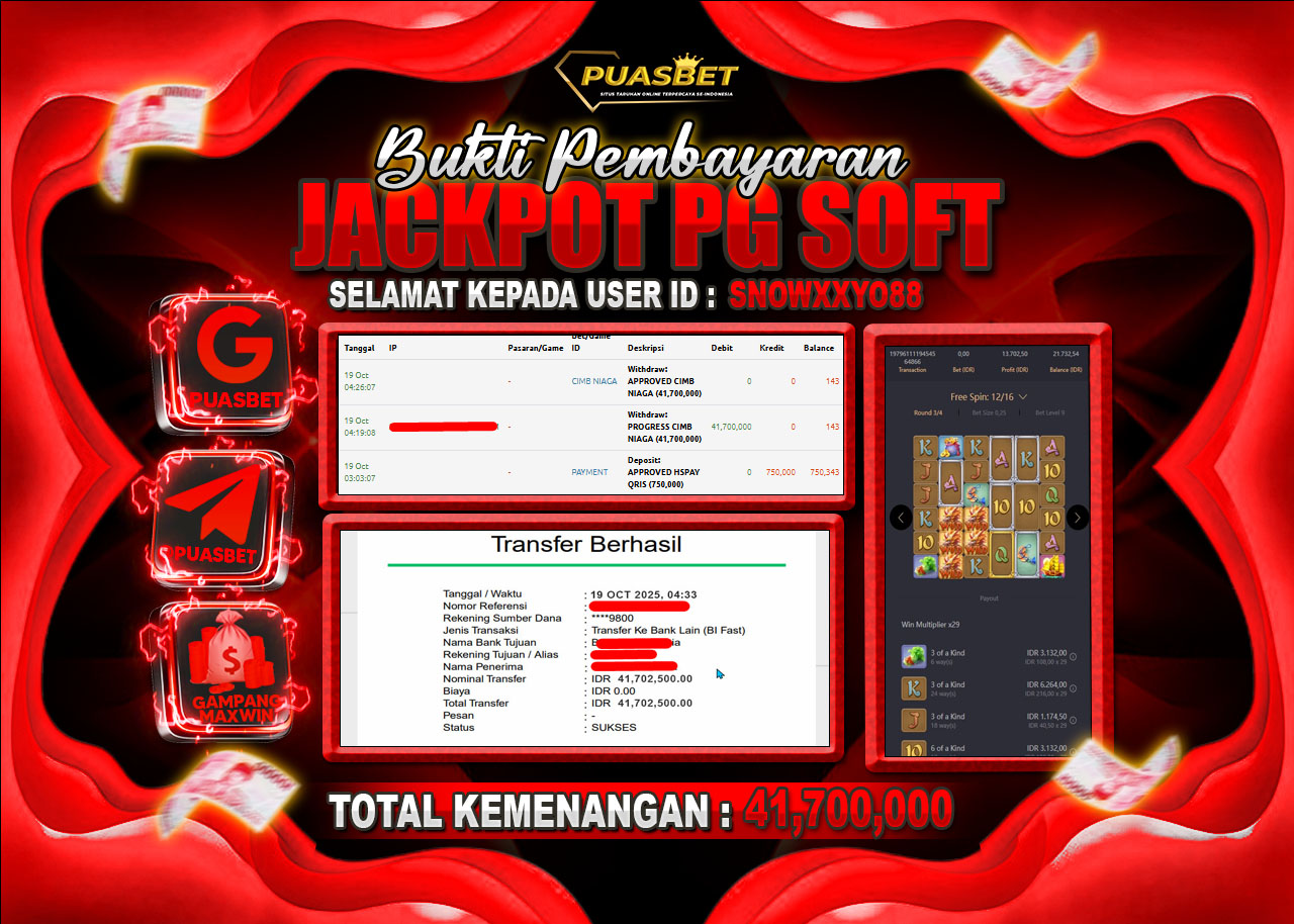 Setelah mengisi formulir Withdraw langgsung dengan cepat pihak PUASBET melakukan transfer kepada pemenang dan dana sudah dapat dicairkan oleh member.