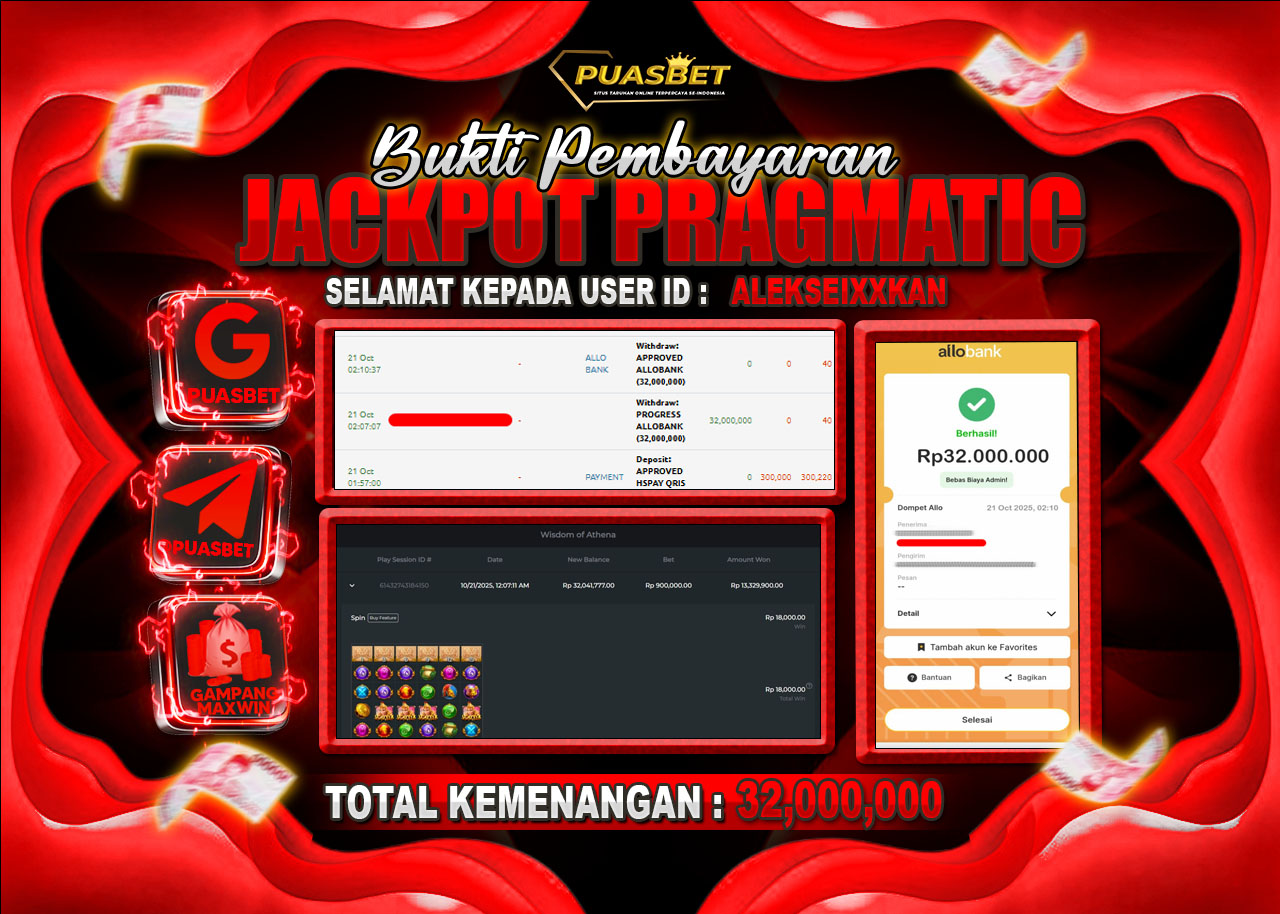 Selamat kepada User id ALEKSEIXXKAN telah berhasil mendapatkan kemenangan besar pada permainan ( PRAGMATIC PLAY WISDOM OF ATHENA) dengan kemenangan sebesar Rp 32,000,000